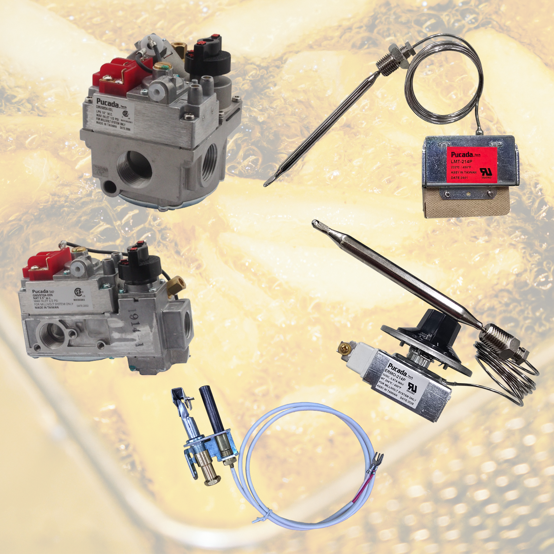 We Provide Complete Gas Fryer Solutions We deliver comprehensive gas fryer solutions with proven stability and reliability, trusted by leading global brands and designed to meet all customer needs in one place. Millivolt Gas Fryer Solutions Millivolt Gas Valve Millivolt Thermostat Auto Reset Hi Limit Switch Manual Reset Hi Limit Switch Thermopile Pilot Auto Gas Fryer Solutions Auto Gas Valve(3VDC,24VAC,24VDC,110VAC,240VAC) Ignition Control(3VDC, 110VAC,240VAC)